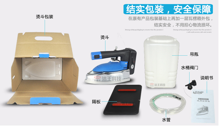 注意事项:水质较差的地区,请使用阻垢粉,阻垢粉与自来水的配比,请按照阻垢粉使用说明使用,使用阻垢粉,可提高熨斗使用可靠性。
